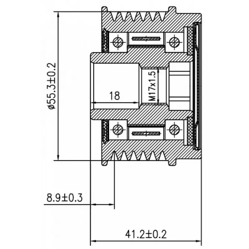 Шкив с обгонной муфтой генеатора для автомобиля Subaru Forester SJ (12-) 2.0T/2.5i Характеристики: Артикул: SGP 2202 OEM номера: 23752-AA130, 535 0336 10 Длина, мм: 41,2 Внутренний диаметр, мм: 17 Наружный диаметр, мм: 55,3 Количество ручьев: 6 Вылет шкива, мм: 8,9 Внутренняя резьба: M17x1,5 Количество на автомобиль: 1 Гарантия: от 1 года.