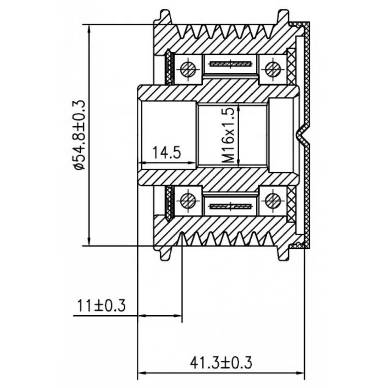 Шкив с обгонной муфтой генератора для автомобилей Fiat Ducato (06-) 2.3JTD Характеристики: Артикул: SGP 1601 OEM номера: 0005801378902, 5801837072, 5801837075, 5801378902, 51993599, 439797, 440437, FG18S093, FGN18S093, 439984, 440758, 440880, 443254, FG20S031, FG20S032, FGN20S031, FGN20S032, 535 0351 10 Длина, мм: 41,3 Внутренний диаметр, мм: 17 Наружный диаметр, мм: 54,8 Количество ручьев: 7 Вылет шкива, мм: 11 Внутренняя резьба: M16x1,5 Количество на автомобиль: 1 Гарантия: от 1 года.