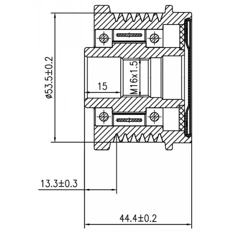 Шкив с обгонной муфтой генератора для автомобилей Ford Mondeo IV (07-)/Galaxy (06-) 2.0TDCi Характеристики: Артикул: SGP 1015 OEM номера: AV 6Q 10A35 2AA, AV 6Q 10A35 2AB, 31285815, 2607423, 535 0237 10, 5350237000, 5350237 Длина, мм: 44,4 Внутренний диаметр, мм: 17 Наружный диаметр, мм: 53,5 Количество ручьев: 6 Вылет шкива, мм: 13,3 Внутренняя резьба: M16x1,5 Количество на автомобиль: 1 Гарантия: от 1 года.