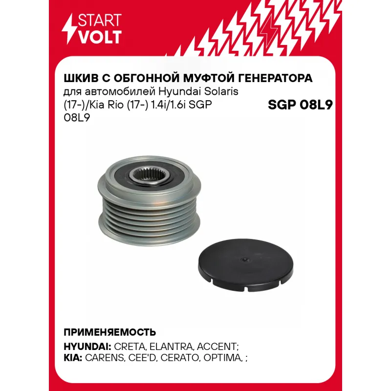 Шкив с обгонной муфтой генератора для автомобилей Hyundai Solaris (17-)/Kia Rio (17-) 1.4i/1.6i SGP 08L9 StartVolt