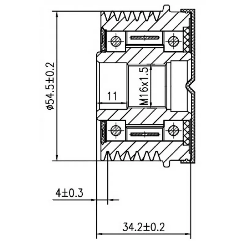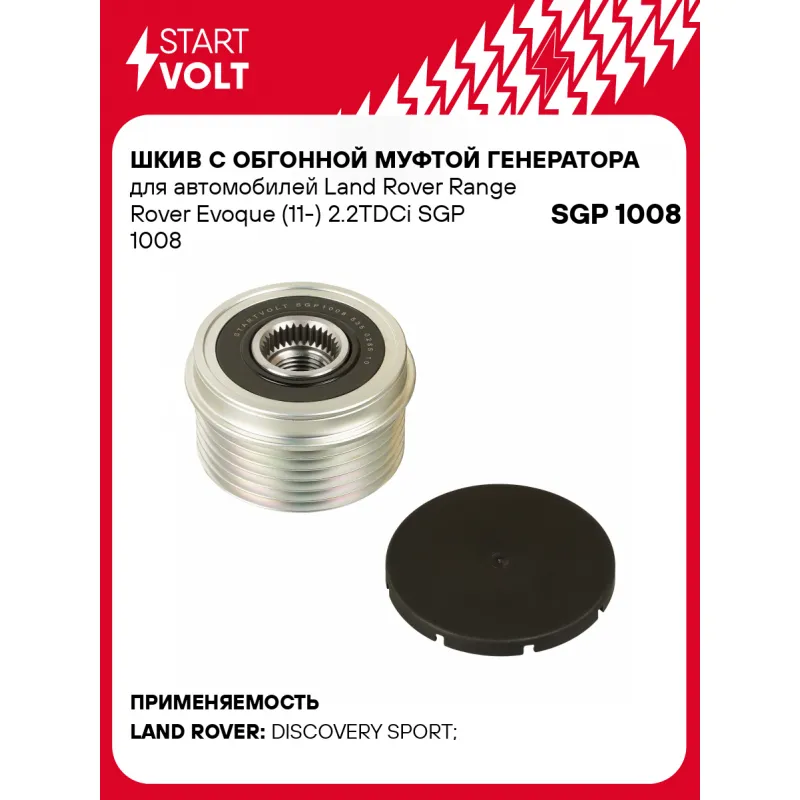 Шкив с обгонной муфтой генератора для автомобилей Land Rover Range Rover Evoque (11-) 2.2TDCi Характеристики: Артикул: SGP 1008 OEM номера: F00M391166, F00M591127, F00M599512, 535 0285 10, 5350285000, F-232369.10 Длина, мм: 34,2 Внутренний диаметр, мм: 17 Наружный диаметр, мм: 54,5 Количество ручьев: 6 Вылет шкива, мм: 4 Внутренняя резьба: M16x1,5 Количество на автомобиль: 1 Гарантия: от 1 года.