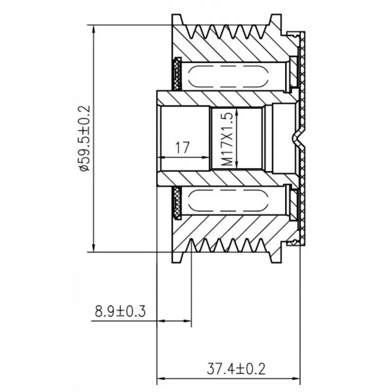 Шкив с обгонной муфтой генератора для автомобилей Mazda MPV (99-) 2.5i (M17x1,5) SGP 2502 StartVolt