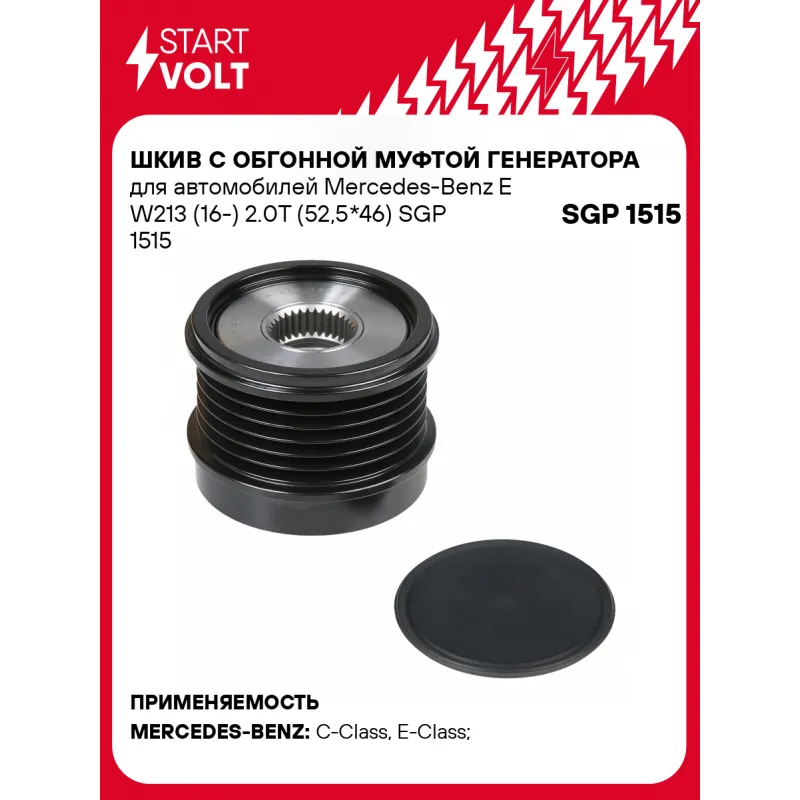 Шкив с обгонной муфтой генератора для автомобилей Mercedes-Benz E W213 (16-) 2.0T (52,5*46) Характеристики: Артикул: SGP 1515 OEM номера: A 264 155 00 00, 264 155 00 00, 535 0373 10 Длина, мм: 46 Внутренний диаметр, мм: 17 Наружный диаметр, мм: 52,5 Количество ручьев: 6 Вылет шкива, мм: 19,5 Внутренняя резьба: M16x1,5 Количество на автомобиль: 1 Гарантия: от 1 года.