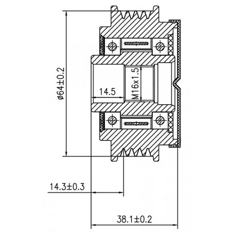 Шкив с обгонной муфтой генератора для автомобилей Mercedes-Benz G W463 (18-) 4.0T Характеристики: Артикул: SGP 1514 OEM номера: A6721-540102, 535 0350 10, 5350350000, F-587936 Длина, мм: 38,1 Внутренний диаметр, мм: 17 Наружный диаметр, мм: 64 Количество ручьев: 4 Вылет шкива, мм: 14,3 Внутренняя резьба: M16x1,5 Количество на ав... Читать полностью →