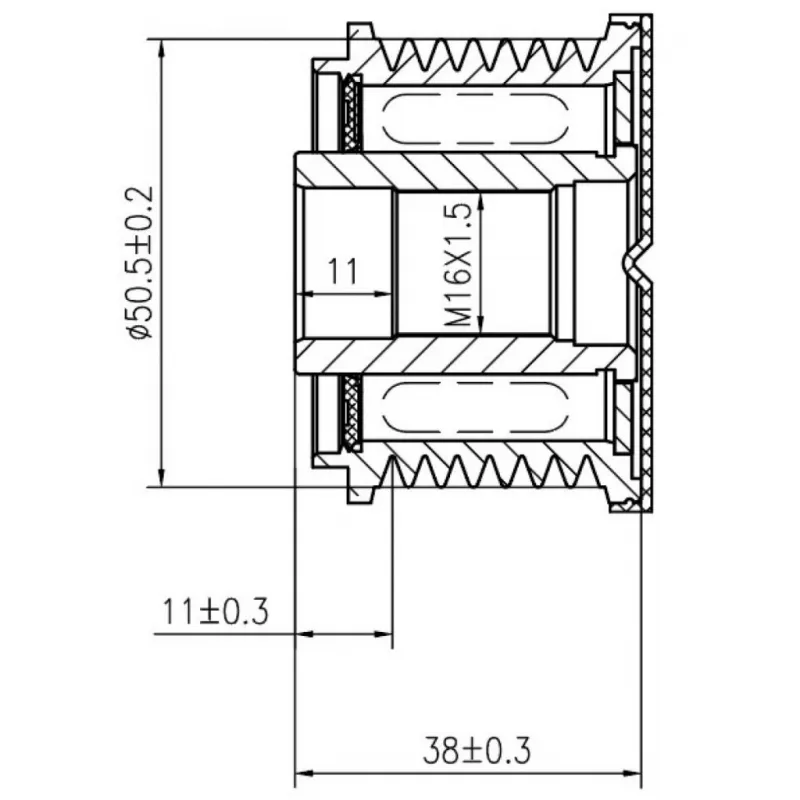 Шкив с обгонной муфтой генератора для автомобилей Mercedes-Benz GL X164 (06-) 3.0D 7PK (тип Bosch) Характеристики: Артикул: SGP 1512 OEM номера: 628 150 00 60, 642 150 08 60, A 628 150 00 60, A 642 150 08 60, 6421500062, A6421500062, F00M349826, F00M391110, F00M391146, F00M991110, F00M991157, 535 0084 10, 5350084000, F-236127, F-236127.01, F-236127.02, F-236127.03, F-236127.04, F-236127.05, F-236127.06, F-236127.08 Длина, мм: 38 Внутренний диаметр, мм: 17 Наружный диаметр, мм: 50,5 Количество ручьев: 7 Вылет шкива, мм: 11 Внутренняя резьба: M16x1,5 Количество на автомобиль: 1 Гарантия: от 1 года.
