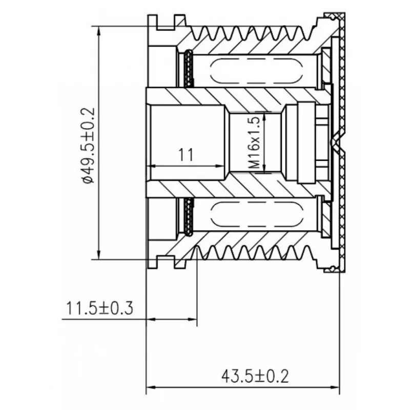 Шкив с обгонной муфтой генератора для автомобилей Mercedes-Benz GL X164 (06-) 3.0D 8PK (тип Bosch) Характеристики: Артикул: SGP 1511 OEM номера: A 629 150 00 60, 629 150 00 60, F00M349828, F00M391104, F00M391144, 535 0108 10, 5350108000, F-239356, F-239356.01, F-239356.02, F-239356.03 Длина, мм: 43,5 Внутренний диаметр, мм: 17 Наружный диаметр, мм: 49,5 Количество ручьев: 8 Вылет шкива, мм: 11,5 Внутренняя резьба: M16x1,5 Количество на автомобиль: 1 Гарантия: от 1 года.