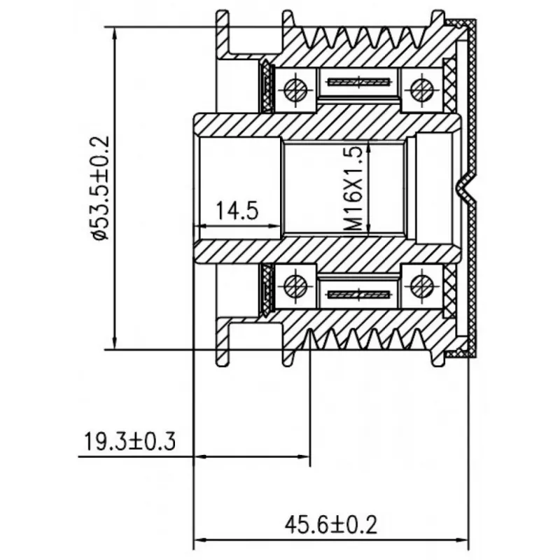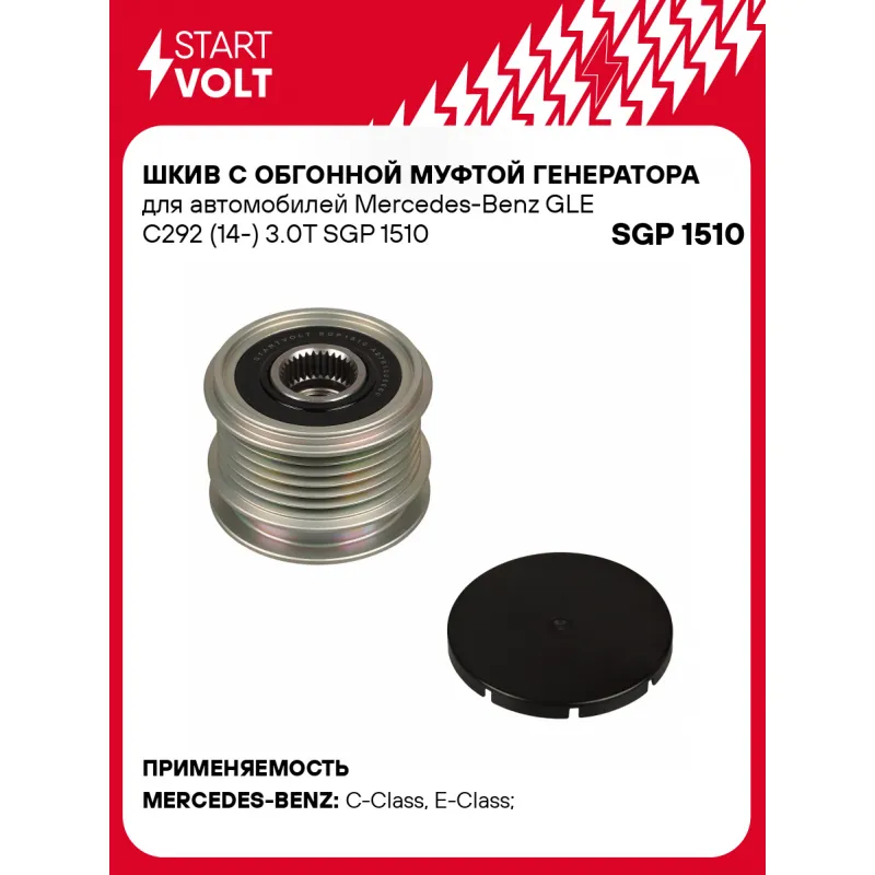 Шкив с обгонной муфтой генератора для автомобилей Mercedes-Benz GLE C292 (14-) 3.0T Характеристики: Артикул: SGP 1510 OEM номера: A 276 150 00 60, 276 150 00 60, 2617536, 535 0328 10, 5350328000, F-581210.01, F-581210.02 Длина, мм: 45,6 Внутренний диаметр, мм: 17 Наружный диаметр, мм: 53,5 Количество ручьев: 6 Вылет шкива, мм: 19,3 Внутренняя резьба: M16x1,5 Количество на автомобиль: 1 Гарантия: от 1 года.