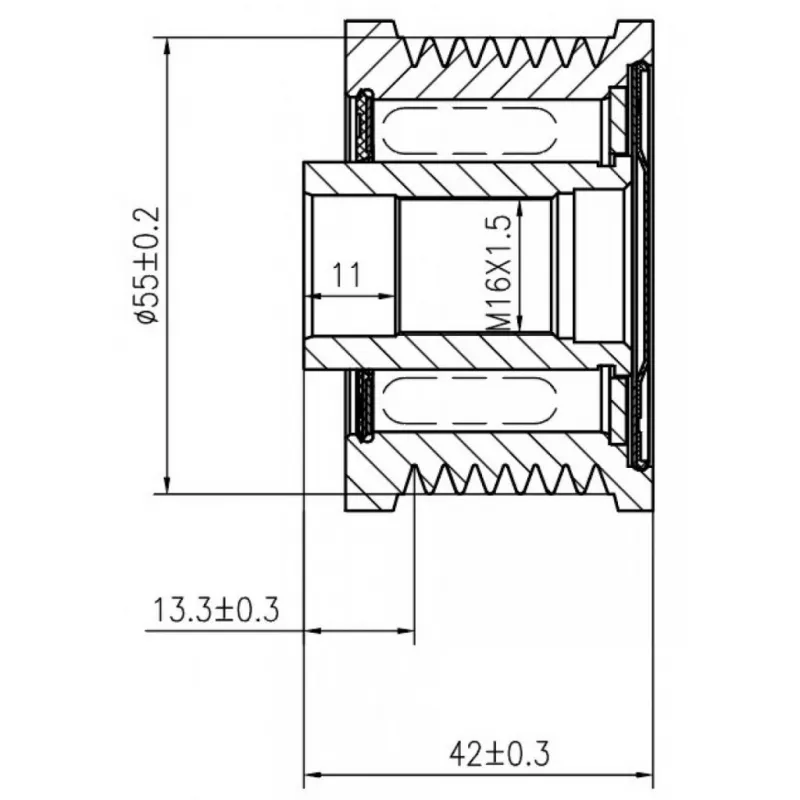Шкив с обгонной муфтой генератора для автомобилей Peugeot Partner (08-) 1.6HDi (тип Hitachi) Характеристики: Артикул: SGP 2004 OEM номера: 588415, GD218752, 535009110, 5350091, 5350091000, F-551759, F-551759.01, 535009120, 535009130 Длина, мм: 42 Внутренний диаметр, мм: 17 Наружный диаметр, мм: 55 Количество ручьев: 7 Вылет шкива, мм: 13,3 Внутренняя резьба: M16x1,5 Количество на автомобиль: 1 Гарантия: от 1 года.