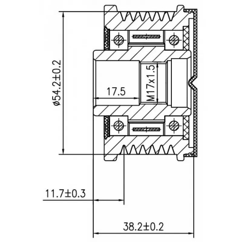 Шкив с обгонной муфтой генератора для автомобилей Peugeot Partner (08-) 1.6HDi (тип Mitsubishi) Характеристики: Артикул: SGP 2001 OEM номера: 588110, 535 0149 10, F550426, F55042601 Длина, мм: 38,2 Внутренний диаметр, мм: 17 Наружный диаметр, мм: 54,2 Количество ручьев: 6 Вылет шкива, мм: 11,7 Внутренняя резьба: M17x1,5 Количест... Читать полностью →