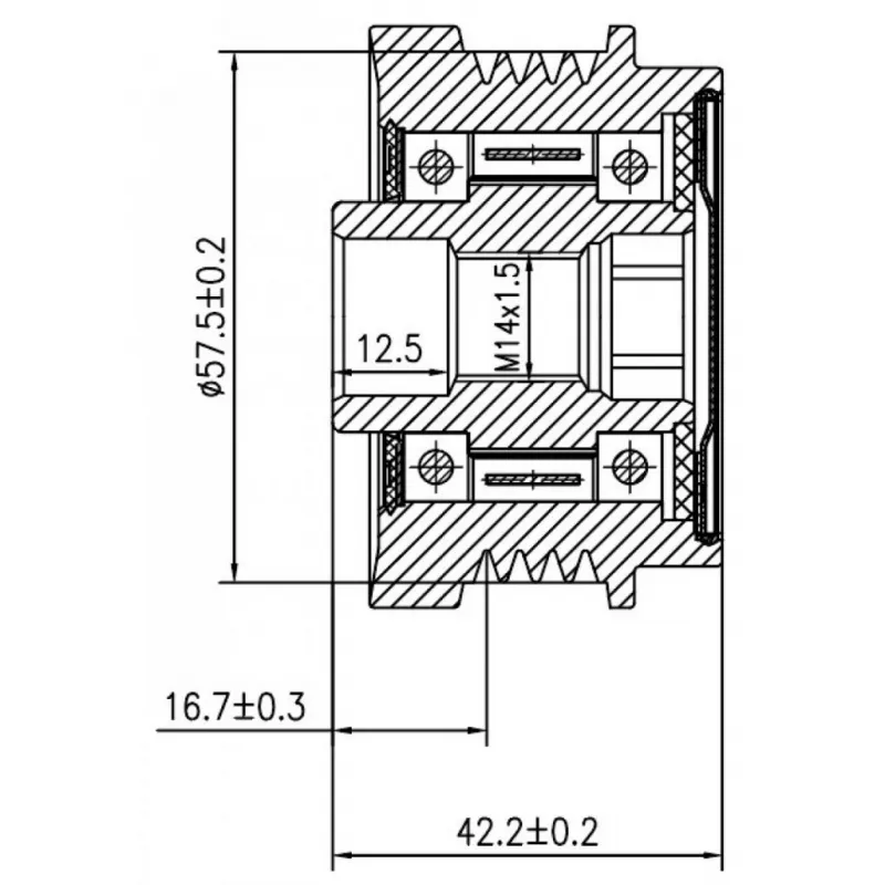 Шкив с обгонной муфтой генератора для автомобилей Toyota Premio (07-)/Allion (07-) 1.5i Характеристики: Артикул: SGP 1908 OEM номера: 274150M010, 274150M011 Длина, мм: 42,2 Внутренний диаметр, мм: 15 Наружный диаметр, мм: 57,5 Количество ручьев: 4 Вылет шкива, мм: 16,7 Внутренняя резьба: M14x1,5 Количество на автомобиль: 1 Гарантия: от 1 года.