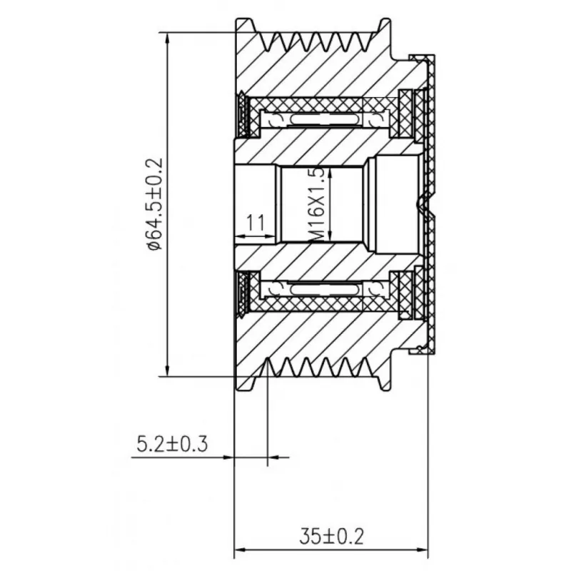 Шкив с обгонной муфтой генератора для автомобилей VAG A6 (10-)/A7 (10-) 2.8TFSI/3.0TFSI Характеристики: Артикул: SGP 1825 OEM номера: 06E 903 119 T, 535 0250 10, 535025000, F-568796, F-568796.01 Длина, мм: 35 Внутренний диаметр, мм: 17 Наружный диаметр, мм: 64,5 Количество ручьев: 6 Вылет шкива, мм: 5,2 Внутренняя резьба: M16x1,5 Количество на автомобиль: 1 Гарантия: от 1 года.
