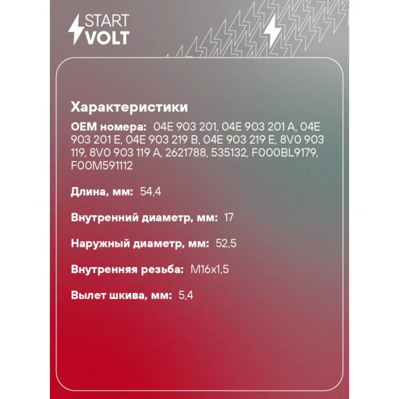 Шкив с обгонной муфтой генератора для автомобилей VAG Polo Sedan (10-) 1.6i (тип Valeo) Характеристики: Артикул: SGP 1826 OEM номера: 04E 903 201, 04E 903 201 A, 04E 903 201 E, 04E 903 219 B, 04E 903 219 E, 8V0 903 119, 8V0 903 119 A, 2621788, 535132, F000BL9179, F00M591112, F00M591113, F00M591133, F00M591146, F00M599448, F00M599449, F00M599548, F00M599823, 535 0279 10, 5350279000, 535036310 Длина, мм: 54,4 Внутренний диаметр, мм: 17 Наружный диаметр, мм: 52,5 Количество ручьев: 6 Вылет шкива, мм: 5,4 Внутренняя резьба: M16x1,5 Количество на автомобиль: 1 Гарантия: от 1 года.
