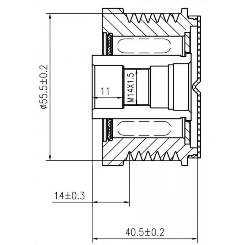 Шкив с обгонной муфтой генератора для автомобилей Volvo S40 (95-) 1.8i Характеристики: Артикул: SGP 1011 OEM номера: 30782701, 9472909, 021040-0970, 535 0024 10, 5350024000, F-231108, F-231108.02, F-231108.1 Длина, мм: 40,5 Внутренний диаметр, мм: 17 Наружный диаметр, мм: 55,5 Количество ручьев: 6 Вылет шкива, мм: 14 Внутренняя резьба: M14x1,5 Количество на автомобиль: 1 Гарантия: от 1 года.