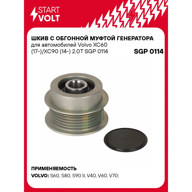 Шкив с обгонной муфтой генератора для автомобилей Volvo XC60 (17-)/XC90 (14-) 2.0T SGP 0114 StartVolt