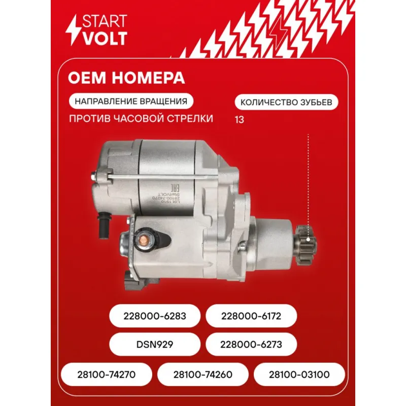 Стартер для автомобилей Toyota RAV4 (00-) 2.0i/Camry V20 (97-) 2.2i 1,4кВт LSt 1910 StartVolt