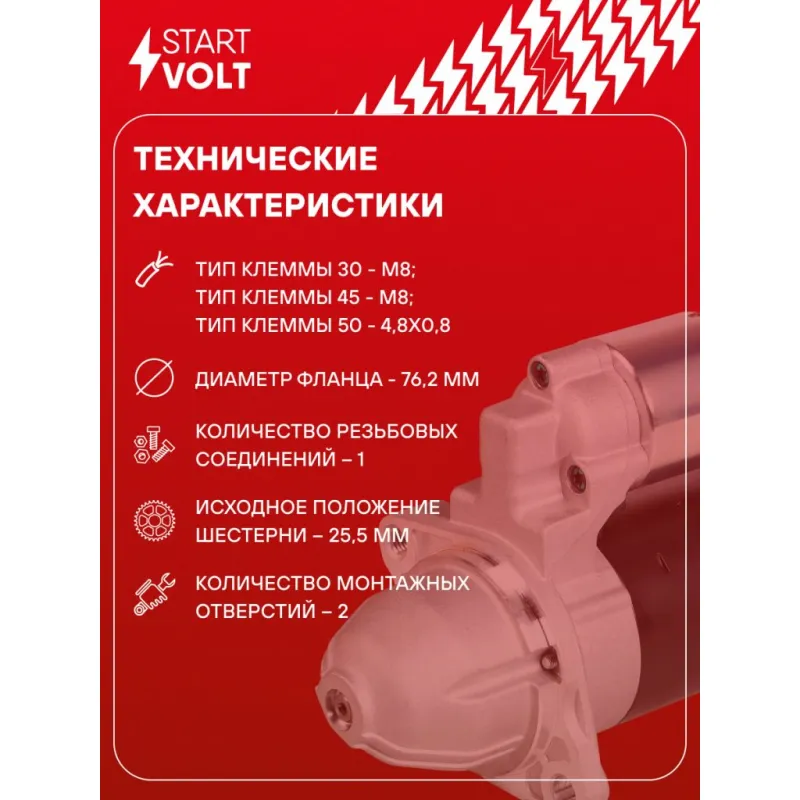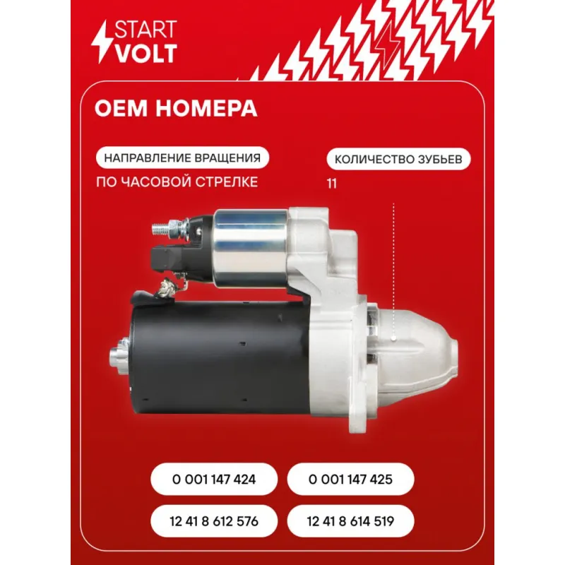 Стартер для автомобилей BMW 5 F10 (11-)/3 F30 (12-)/X3 F25 (11-) 2.0T AT 2,1кВт Характеристики: Артикул: LSt 2610 OEM номера: 12 41 8 612 576, 12 41 8 614 519, 0 001 147 424, 0 001 147 425 Номинальное напряжение, В: 12 Количество зубьев: 11 Направление вращения: по часовой стрелке Мощность, кВт: 2,1 Тип клеммы 30: M8 Тип клеммы 45: M8 Тип клеммы 50: 4,8x0,8 Количество резьбовых соединений: 1 Диаметр фланца, мм: 76,2 Исходное положение шестерни, мм: 25,5 Количество монтажных отверстий: 2 Количество на автомобиль: 1 Комплектация: Индивидуальный технический паспорт - 1 шт Стартер - 1 шт Паспорт изделия/гарантийный талон - 1 шт Гарантия: от 1 года.