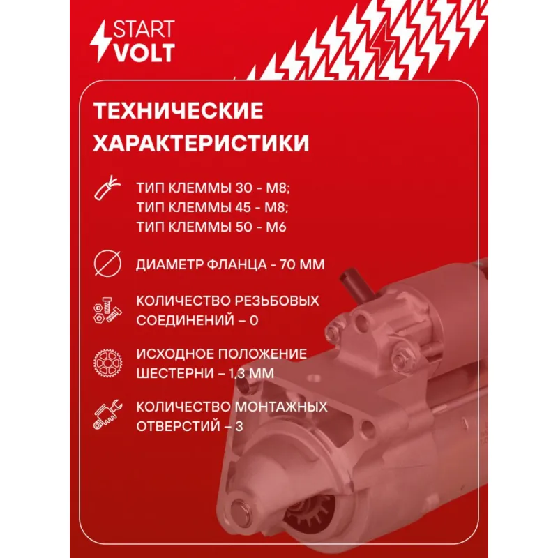Стартер для автомобилей BMW X1 F48 (14-) 2.0D 1,9кВт Характеристики: Артикул: LSt 2613 OEM номера: 12418570845, 12417645979, 12417645980, 12418572542, 12418581690, 4380000470, 4380000471, 4380000472, 4380000473, 4380000474, 4380000475, 4380000480, 4380000481, 4380000482, 4380000483 Номинальное напряжение, В: 12 Количество зубьев: 15 Направление вращения: по часовой стрелке Мощность, кВт: 1,9 Тип клеммы 30: M8 Тип клеммы 45: M8 Тип клеммы 50: M6 Количество резьбовых соединений: 0 Диаметр фланца, мм: 70 Исходное положение шестерни, мм: 1,3 Количество монтажных отверстий: 3 Количество на автомобиль: 1 Комплектация: Индивидуальный технический паспорт - 1 шт Стартер - 1 шт Паспорт изделия/гарантийный талон - 1 шт Гарантия: от 1 года.