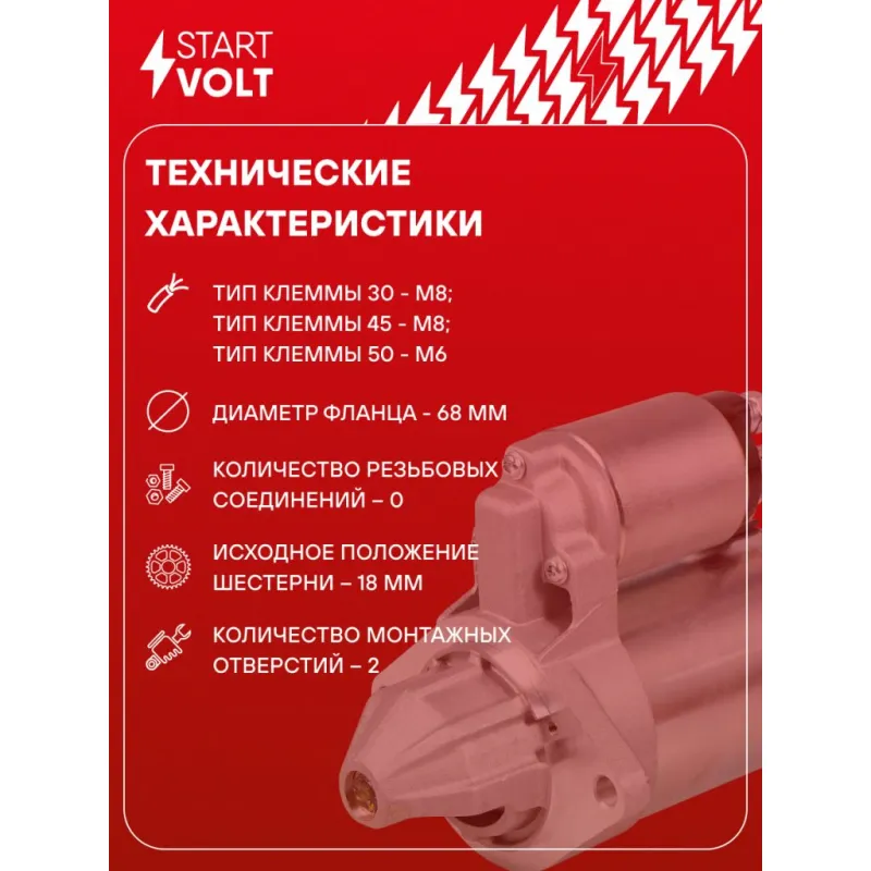 Стартер для автомобилей Daewoo Nexia (94-) 1.5i/Opel Vectra A (88-) 1.6i 1,4кВт Характеристики: Артикул: LSt 0512 OEM номера: 96208781, 96469960, 10465021, 10465022, 10465067, 3471169, 9000700, 9000751, 9000756, 9000758, 9000781, DRS4861 Номинальное напряжение, В: 12 Количество зубьев: 9 Направление вращения: по часовой стрелке Мощность, кВт: 1,4 Тип клеммы 30: M8 Тип клеммы 45: M8 Тип клеммы 50: M6 Количество резьбовых соединений: 0 Диаметр фланца, мм: 68 Исходное положение шестерни, мм: 18 Количество монтажных отверстий: 2 Количество на автомобиль: 1 Комплектация: Индивидуальный технический паспорт - 1 шт Стартер - 1 шт Паспорт изделия/гарантийный талон - 1 шт Гарантия: от 1 года.