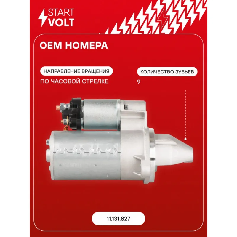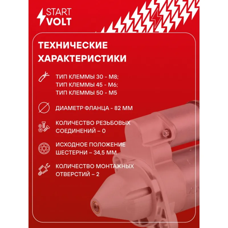 Стартер для автомобилей ГАЗ/УАЗ с дв. ЗМЗ-402/УМЗ-421/4215/4216 (тип Iskra) 1,4кВт Описание: Оригинальный стартер STARTVOLT LSt 0304X мощностью 1,4 кВт предназначен для пуска автомобильного двигателя внутреннего сгорания. Предназначен для автомобилей GAZ GAZELLE, SOBOL, VOLGA, UAZ 3151, 452.. Подбор по VIN-номеру вашего автомобиля - через кнопку 'Задать вопрос'. Специалист проверит применяемость и ответит вам. Полностью повторяет параметры оригинальных изделий, обеспечивая надёжный запуск двигателя при любых условиях. Изготовлен с соблюдением оригинальных геометрических параметров, полностью совместим с заводскими узлами. Преимущества: • Полное соответствие оригинальным узлам; • Совместим с оригинальными деталями; • Длительный срок службы и устойчивость к износу; • Стабильная работа системы запуска; • Высокоточная сборка с пооперационным контролем качества; • Каждый стартер проходит стендовое тестирование — протокол в комплекте; • Надёжность при любом запуске двигателя; • STARTVOLT — 15 лет на рынке автоэлектрики — нам доверяют профессионалы; • Сертифицирован по стандарту EAC (ЕАЭС) — соответствует требованиям безопасности и качества. Товар новый, не восстановленный. Готов к установке. Отличный выбор для уверенного запуска двигателя в любых условиях. Характеристики: Артикул: LSt 0304X OEM номера: 11.131.827 Номинальное напряжение, В: 12 Количество зубьев: 9 Направление вращения: по часовой стрелке Мощность, кВт: 1,4 Тип клеммы 30: M8 Тип клеммы 45: M6 Тип клеммы 50: M5 Количество резьбовых соединений: 0 Диаметр фланца, мм: 82 Исходное положение шестерни, мм: 34,5 Количество монтажных отверстий: 2 Количество на автомобиль: 1 Комплектация: Индивидуальный технический паспорт - 1 шт Стартер - 1 шт Паспорт изделия/гарантийный талон - 1 шт Гарантия: от 1 года.