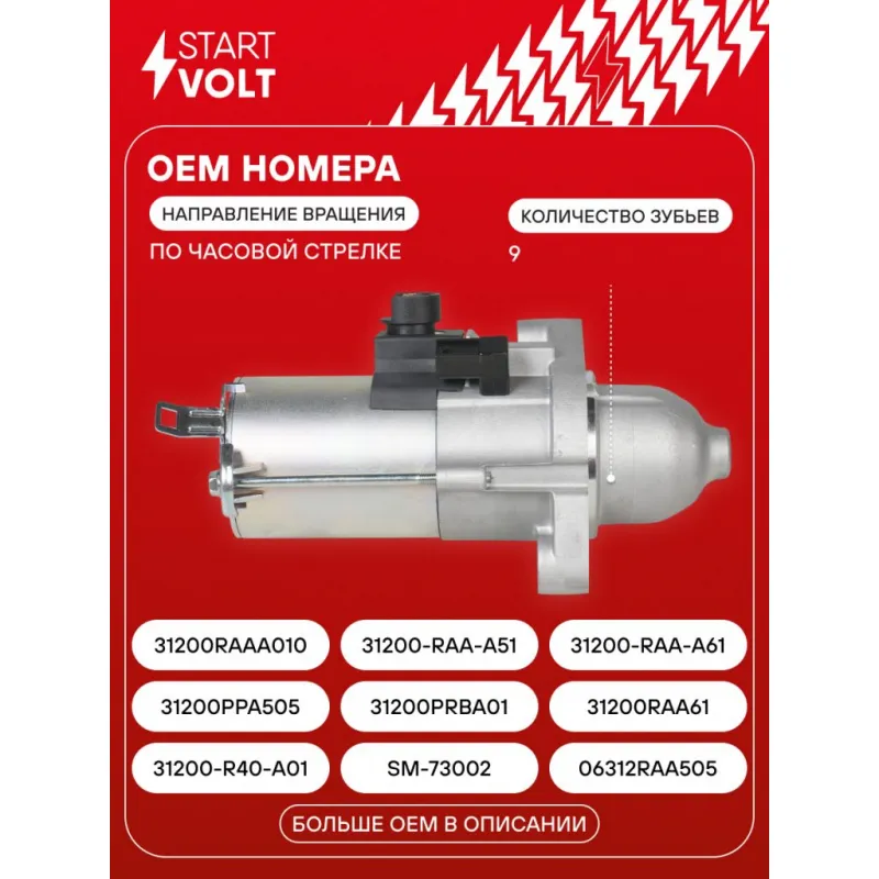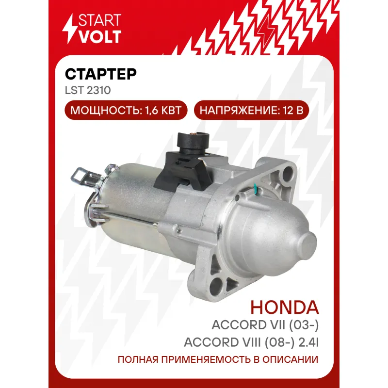 Стартер для автомобилей Honda Accord VII (03-)/Accord VIII (08-) 2.4i 1,6кВт Характеристики: Артикул: LSt 2310 OEM номера: 31200-R40-A01, SM-73002, 06312RAA505, 31200PPA505, 31200PRBA01, 31200RAA61, 31200RAAA010, 31200-RAA-A51, 31200-RAA-A61, 31200RFE004, 31200-RRA-A51, 31200-RZA-A01, DSDH9, MHG016, RAA43, RRA53, RZA5V, SM-73001, SM-71007, SM-71005, SM-71004, SM-61211, SM-61209, SM-61206 Номинальное напряжение, В: 12 Количество зубьев: 9 Направление вращения: по часовой стрелке Мощность, кВт: 1,6 Тип клеммы 50: 4,8x0,8 Количество резьбовых соединений: 0 Диаметр фланца, мм: 75 Исходное положение шестерни, мм: 33,7 Количество монтажных отверстий: 2 Количество на автомобиль: 1 Подходит для авто: Honda Accord (02-), CR-V III (06-), Element (03-) Для проверки применяемости отправьте VIN автомобиля через вкладку "Есть вопросы о товаре?" Комплектация: Индивидуальный технический паспорт - 1 шт Стартер - 1 шт Паспорт изделия/гарантийный талон - 1 шт Гарантия: от 1 года.
