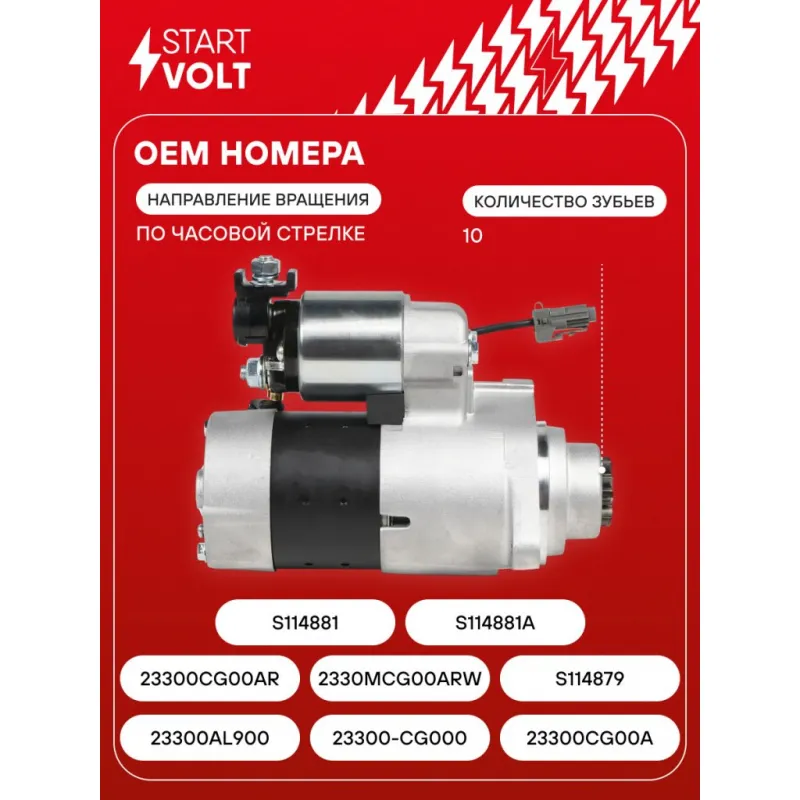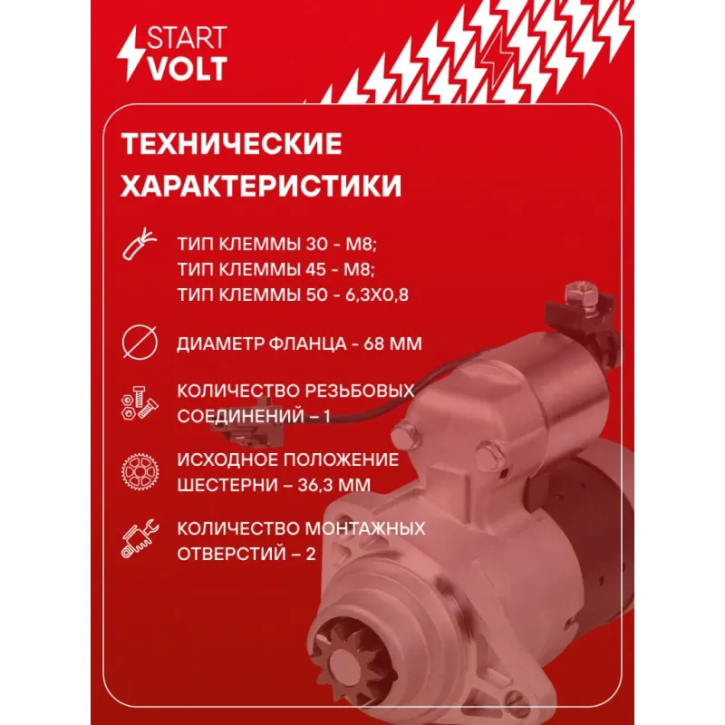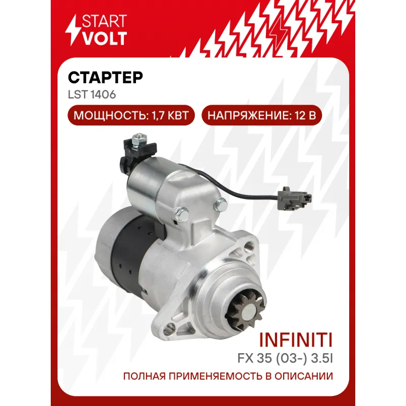 Стартер для автомобилей Infiniti FX 35 (03-) 3.5i 1,7кВт Характеристики: Артикул: LSt 1406 OEM номера: 23300AL900, 23300-CG000, 23300CG00A, 23300CG00AR, 2330MCG00ARW, S114879, S114881, S114881A Номинальное напряжение, В: 12 Количество зубьев: 10 Направление вращения: по часовой стрелке Мощность, кВт: 1,7 Тип клеммы 30: M8 Тип клеммы 45: M8 Тип клеммы 50: 6,3x0,8 Количество резьбовых соединений: 1 Диаметр фланца, мм: 68 Исходное положение шестерни, мм: 36,3 Количество монтажных отверстий: 2 Количество на автомобиль: 1 Комплектация: Индивидуальный технический паспорт - 1 шт Стартер - 1 шт Паспорт изделия/гарантийный талон - 1 шт Гарантия: от 1 года.
