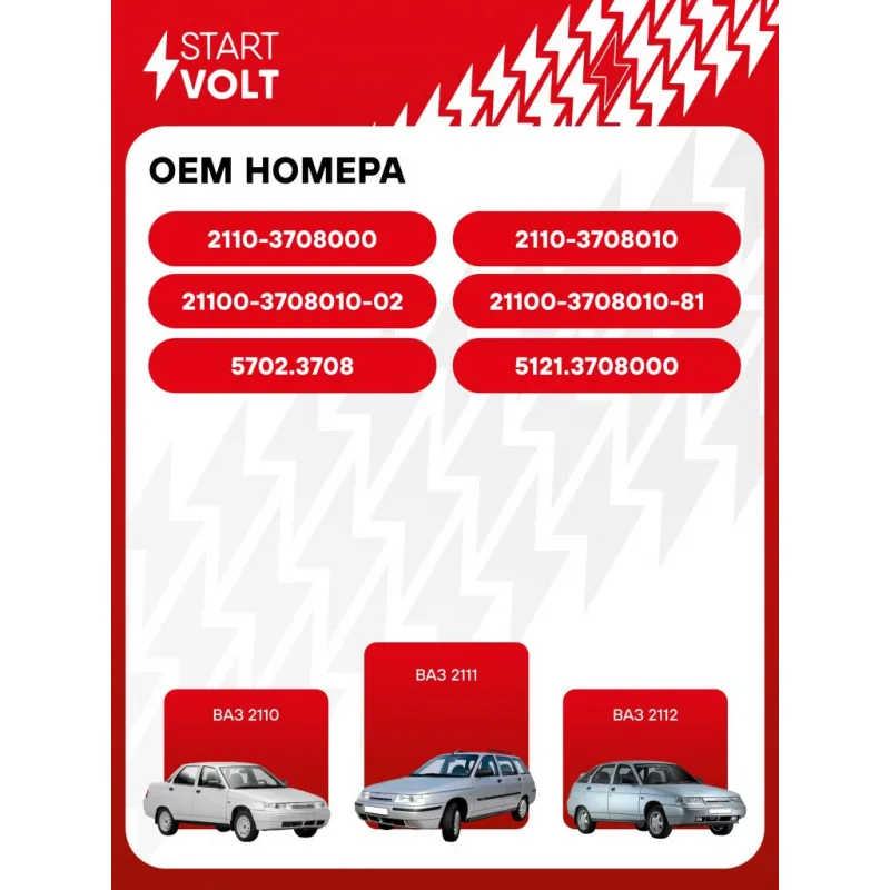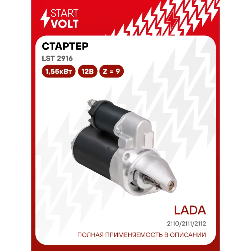 Стартер для автомобилей Лада 2110 и модификации (двигатели с ЭСУД) 1,55кВт Описание: Новый оригинальный стартер STARTVOLT LSt 2916 мощностью 1,55 кВт предназначен для пуска автомобильного двигателя внутреннего сгорания. Подходит для LADA ВАЗ 2110-2112. с двигателями с ЭСУД Изготовлен с соблюдением оригинальных геометрических параметров, полностью совместим с заводскими узлами. Подбор по VIN-номеру вашего автомобиля - через кнопку 'Задать вопрос'. Специалист проверит применяемость и ответит вам. Преимущества: • Полное соответствие оригинальным узлам; • Совместим с оригинальными деталями; • Длительный срок службы и устойчивость к износу; • Стабильная работа системы запуска; • Высокоточная сборка с пооперационным контролем качества; • Каждый стартер проходит стендовое тестирование — протокол в комплекте; • STARTVOLT — 15 лет на рынке автоэлектрики — нам доверяют профессионалы; • Гарантия 2 года; • Сертифицирован по стандарту EAC (ЕАЭС) — соответствует требованиям безопасности и качества. Товар новый, не восстановленный. Готов к установке. Отличный выбор для уверенного запуска двигателя в любых условиях. Характеристики: Артикул: LSt 2916 OEM номера: 2110-3708000, 21100-3708010-02, 21100-3708010-00, 21100-3708010-81, 5702.3708, 5702.3708000, 2110-3708010-81, 5121.3708000, 2110-3708010-02, 2110-3708010, 2111.3708010-01 Номинальное напряжение, В: 12 Количество зубьев: 9 Направление вращения: против часовой стрелки Мощность, кВт: 1,55 Тип клеммы 30: M8 Тип клеммы 45: M6 Тип клеммы 50: 6,3x0,8 Количество резьбовых соединений: 0 Диаметр фланца, мм: 76 Исходное положение шестерни, мм: 34,3 Сопутствующий товар: Втягивающие реле: VSR 0101 Сопутствующий товар: Щёточные узлы: VBS 0101 Сопутствующий товар: Приводы стартеров (бендиксы): VCS 0110 Сопутствующий товар: Роторы: SR 0101 Количество монтажных отверстий: 2 Количество на автомобиль: 1 Комплектация: Индивидуальный технический паспорт - 1 шт Стартер - 1 шт Паспорт изделия/гарантийный талон - 1 шт Гарантия: от 1 года.