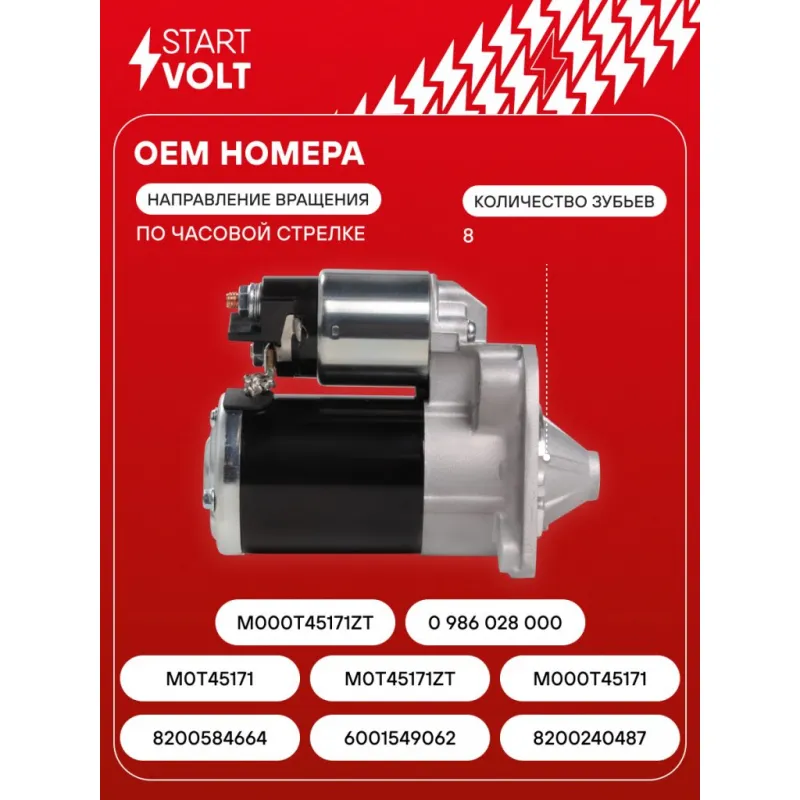 Стартер для Лада Largus (12-)/Renault Logan (04-)/Duster (10-) 1.4i/1.6i 0,8кВт LSt 0901
