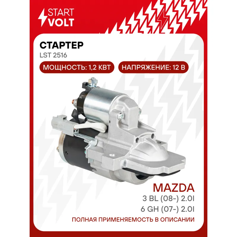 Стартер для автомобилей Mazda 3 BL (08-)/6 GH (07-) 2.0i 1,4кВт LSt 2516 StartVolt