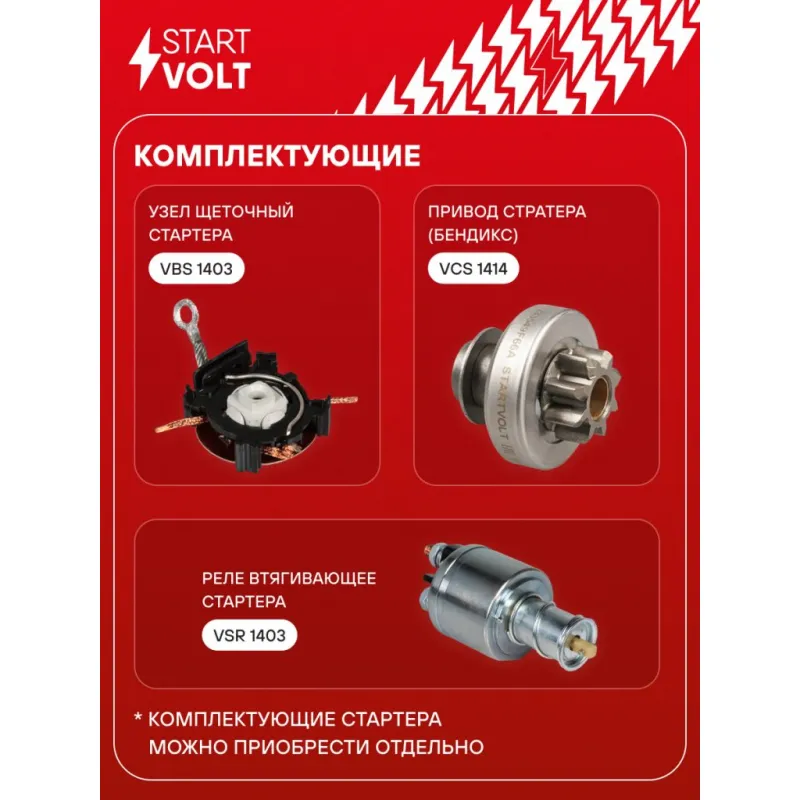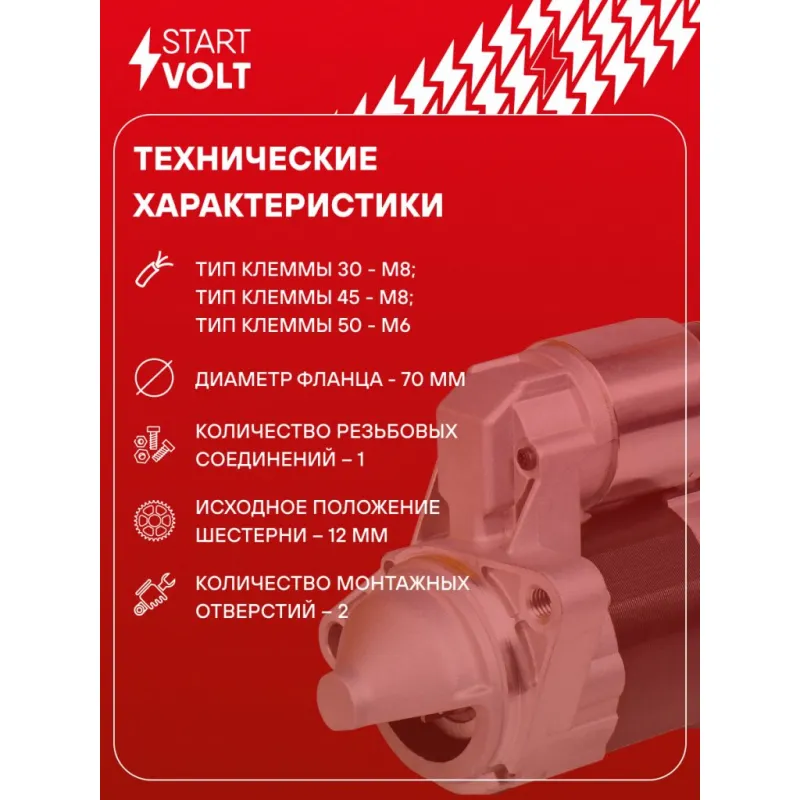 Стартер для автомобилей Nissan Almera N16 (00-)/Primera P12 (02-) 1.5i/1.8i 0,7кВт Описание: Оригинальный стартер STARTVOLT LSt 1414 мощностью 0,7 кВт предназначен для пуска автомобильного двигателя внутреннего сгорания. Предназначен для автомобилей NISSAN PRIMERA, ALMERA.. Подбор по VIN-номеру вашего автомобиля - через кнопку 'Задать вопрос'. Специалист проверит применяемость и ответит вам. Полностью повторяет параметры оригинальных изделий, обеспечивая надёжный запуск двигателя при любых условиях. Изготовлен с соблюдением оригинальных геометрических параметров, полностью совместим с заводскими узлами. Преимущества: • Полное соответствие оригинальным узлам; • Совместим с оригинальными деталями; • Длительный срок службы и устойчивость к износу; • Стабильная работа системы запуска; • Высокоточная сборка с пооперационным контролем качества; • Каждый стартер проходит стендовое тестирование — протокол в комплекте; • Надёжность при любом запуске двигателя; • STARTVOLT — 15 лет на рынке автоэлектрики — нам доверяют профессионалы; • Сертифицирован по стандарту EAC (ЕАЭС) — соответствует требованиям безопасности и качества. Товар новый, не восстановленный. Готов к установке. Отличный выбор для уверенного запуска двигателя в любых условиях. Характеристики: Артикул: LSt 1414 OEM номера: 23300-9F600, 23300-9F660, 23300-9F661, 23300-9F662, 23300-9F66A, 23300-9F66B, D7E31, TS8E4 Номинальное напряжение, В: 12 Количество зубьев: 8 Направление вращения: по часовой стрелке Мощность, кВт: 0,7 Тип клеммы 30: M8 Тип клеммы 45: M8 Тип клеммы 50: M6 Количество резьбовых соединений: 1 Диаметр фланца, мм: 70 Исходное положение шестерни, мм: 12 Количество монтажных отверстий: 2 Количество на автомобиль: 1 Подходит для авто: Nissan Almera N16 (00-), Primera P12 (02-) Для проверки применяемости отправьте VIN автомобиля через вкладку "Есть вопросы о товаре?" Комплектация: Индивидуальный технический паспорт - 1 шт Стартер - 1 шт Паспорт изделия/гарантийный талон - 1 шт Гарантия: от 1 года.