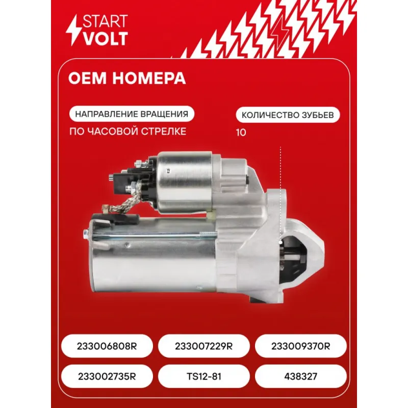 Стартер для автомобилей Renault Duster (10-) 2.0i 4x4 1,2кВт Характеристики: Артикул: LSt 0912 OEM номера: 233002735R, TS12-81, 438 327, 233006808R, 233007229R , 233009370R Номинальное напряжение, В: 12 Количество зубьев: 10 Направление вращения: по часовой стрелке Мощность, кВт: 1,2 Тип клеммы 30: M8 Тип клеммы 45: M8 Тип клеммы 50: M5 Количество резьбовых соединений: 3 Исходное положение шестерни, мм: -0,8 Количество монтажных отверстий: 4 Количество на автомобиль: 1 Комплектация: Индивидуальный технический паспорт - 1 шт Стартер - 1 шт Паспорт изделия/гарантийный талон - 1 шт Гарантия: от 1 года.