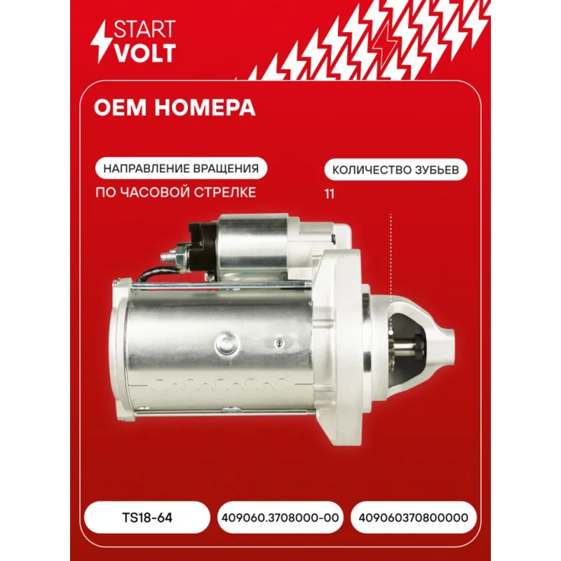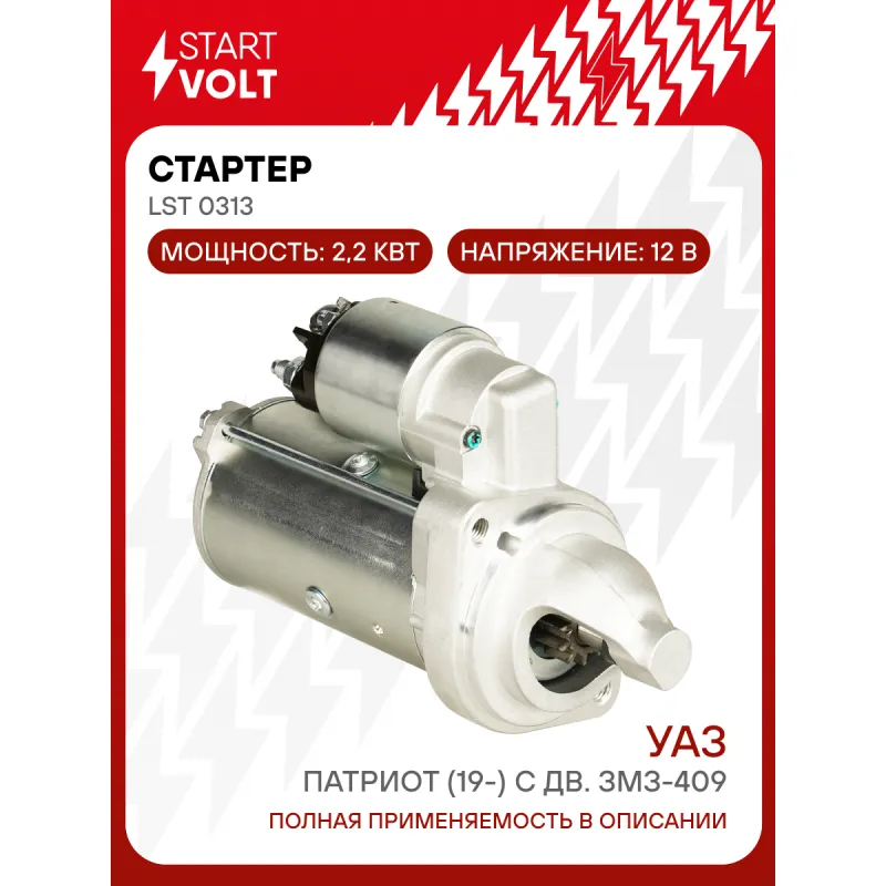 Стартер для автомобилей УАЗ Патриот (19-) с дв. ЗМЗ-409 PRO 2,2кВт Характеристики: Артикул: LSt 0313 OEM номера: TS18-64, 409060370800000 Номинальное напряжение, В: 12 Количество зубьев: 11 Направление вращения: по часовой стрелке Мощность, кВт: 2,2 Тип клеммы 30: M8 Тип клеммы 45: M8 Тип клеммы 50: M5 Количество резьбовых соединений: 2 Диаметр фланца, мм: 82 Исходное положение шестерни, мм: 20,4 Количество монтажных отверстий: 2 Количество на автомобиль: 1 Комплектация: Индивидуальный технический паспорт - 1 шт Стартер - 1 шт Паспорт изделия/гарантийный талон - 1 шт Гарантия: от 1 года.
