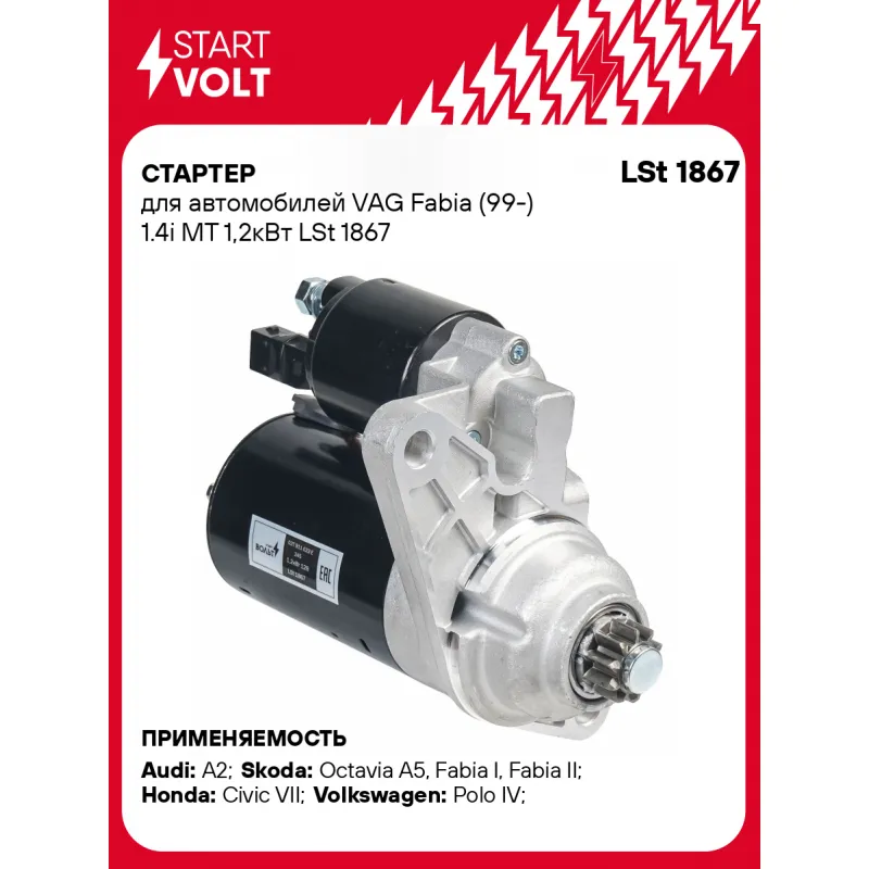 Стартер для автомобилей VAG Fabia (99-) LSt 1867