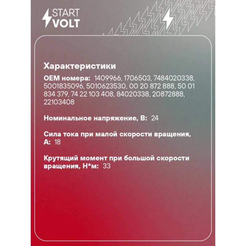 | Сила тока при малой скорости вращения, А | 18 |
