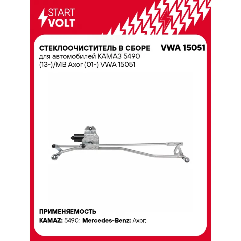 Стеклоочиститель в сборе для автомобилей КАМАЗ 5490 (13-)/MB Axor (01-) Характеристики: Артикул: VWA 15051 OEM номера: 9738200181, A9738200181, A 973 820 01 81 64 Количество на автомобиль: 1 Подходит для авто: КамаАЗ 5490 Mercedes-Benz Axor (01-), Axor (01-), Axor (04-) Для проверки применяемости отправьте VIN автомобиля через вкладку "Есть вопросы о товаре?" Комплектация: Стеклоочиститель в сборе - 1 шт Паспорт изделия/гарантийный талон - 1 шт Гарантия: от 1 года.