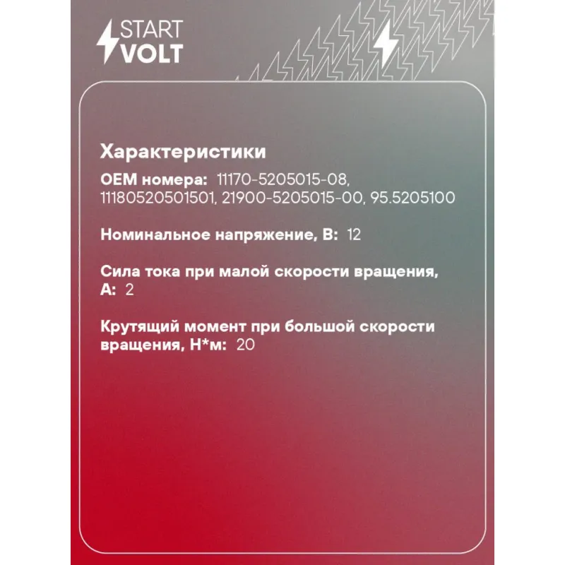 | STARTVOLT VWA01018 1 шт. | 2 дня | 320.00 р. | |
