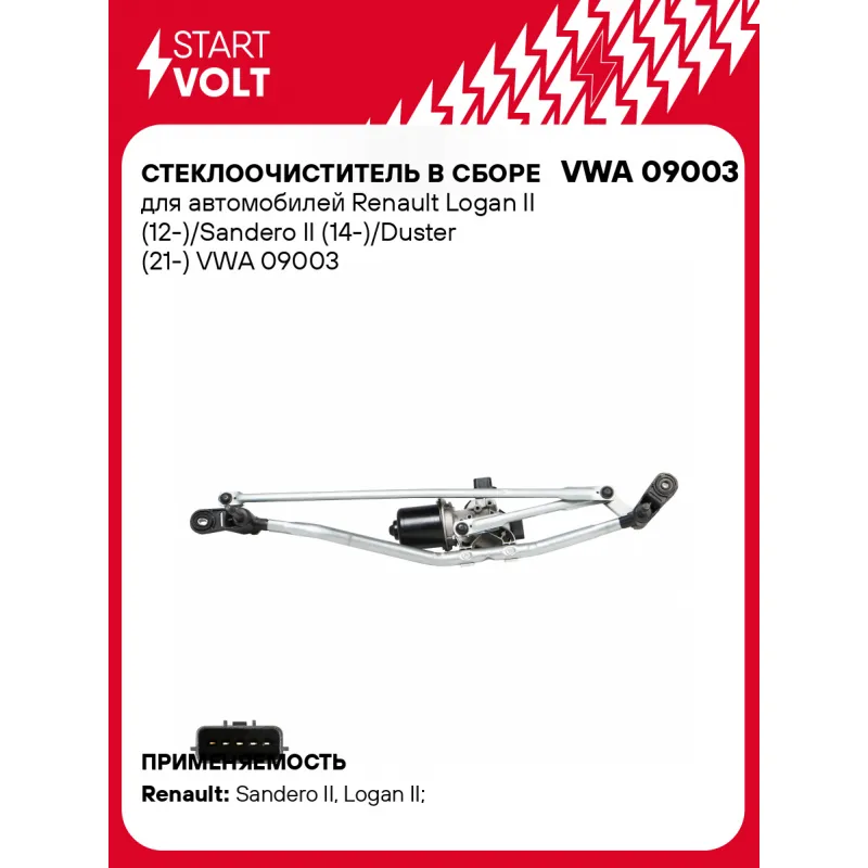 Стеклоочиститель в сборе для автомобилей Renault Logan II (12-)/Sandero II (14-)/Duster (21-) VWA 09003 StartVolt