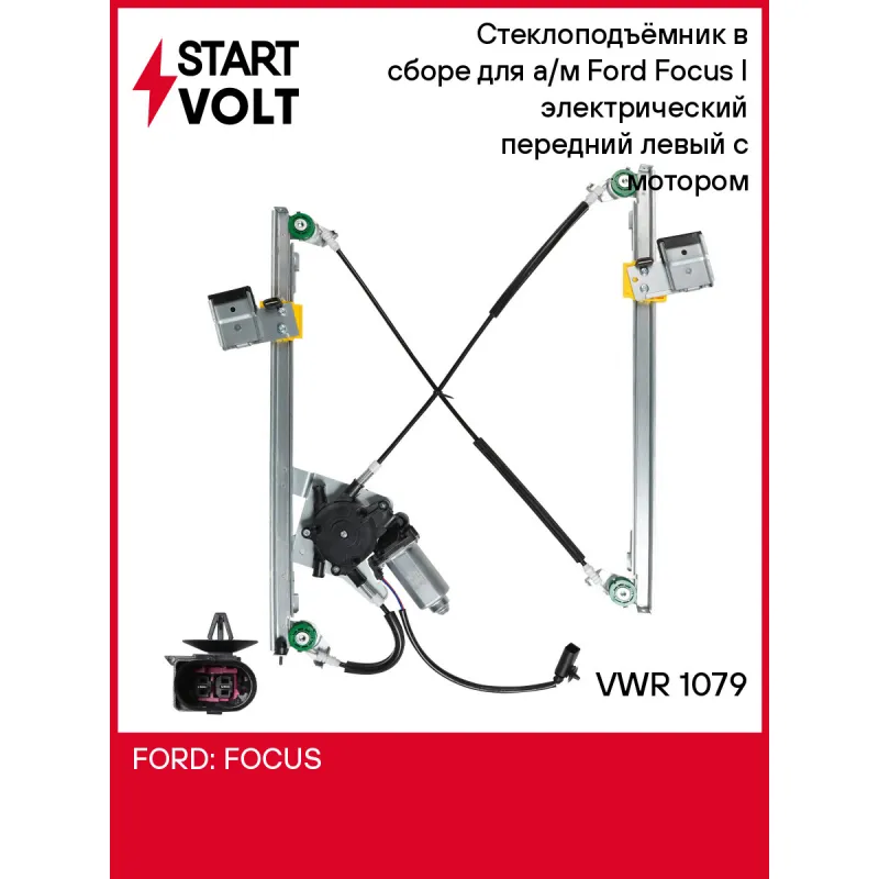 Стеклоподъёмник в сборе для а/м Ford Focus I (98-) электрический передний левый с мотором VWR 1079 StartVolt