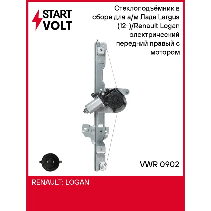 Стеклоподъёмник в сборе для а/м Лада Largus (12-)/Renault Logan (04-) электрический передний правый с мотором VWR 0902 StartVolt