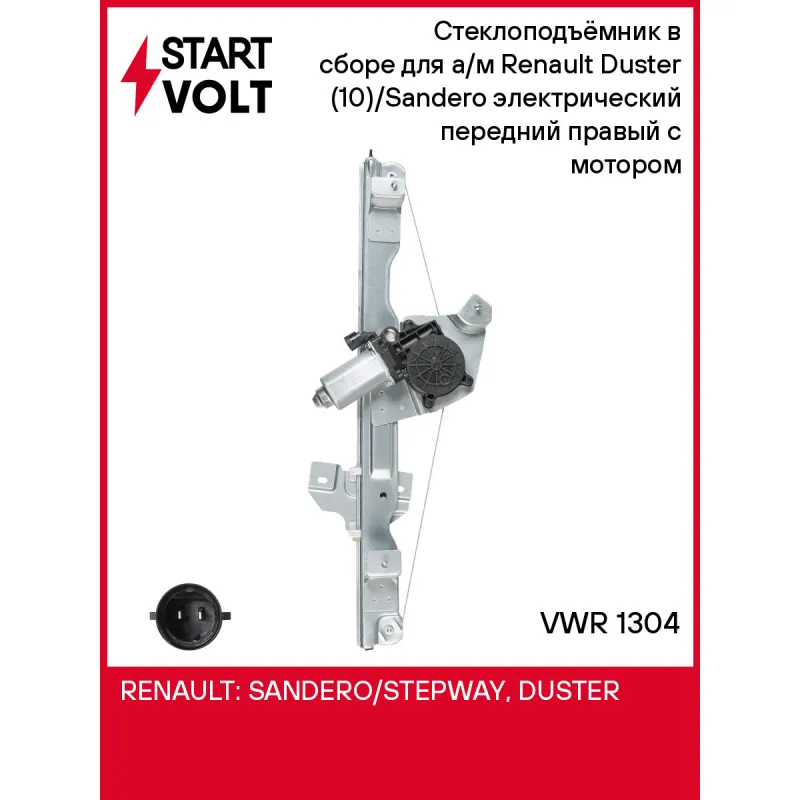 Стеклоподъёмник в сборе для а/м Renault Duster (10)/Sandero (09-) электрический передний правый с мотором VWR 1304 StartVolt