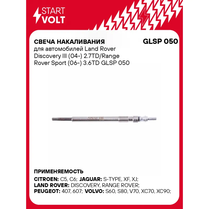 Свеча накаливания для автомобилей Land Rover Discovery III (04-) 2.7TD/Range Rover Sport (06-) 3.6TD GLSP 050 StartVolt