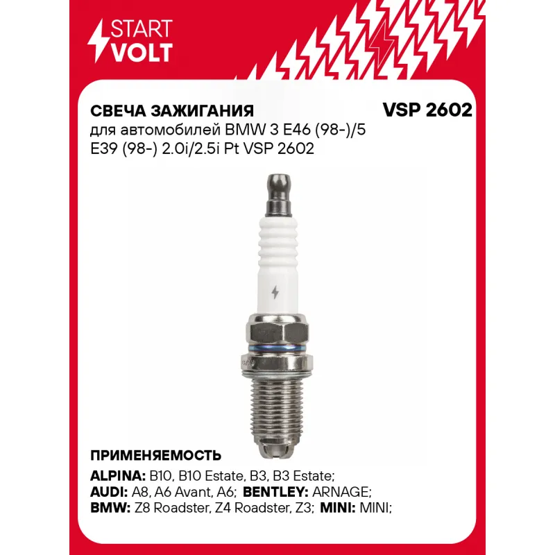 Свеча зажигания для автомобилей BMW 3 E46 (98-)/5 E39 (98-) 2.0i/2.5i Pt Описание: Гарантийный срок - 2 года. Характеристики: Артикул: VSP 2602 OEM номера: 12 12 0 030 548, 12 12 0 037 607, 12 12 0 037 608, 12 12 1 435 955, 12 12 1 435 956, 12 12 9 071 003, 1 435 955, 1 435 956, 12120141871, 9 071 003, 0 030 548, 0 037 607, 0 037 608, 0 141 871, 3199, BKR6EQUP, K20TXR Резистор: Есть Момент затяжки, нм: 25-30 Ширина ключа,мм: 16 Размер резьбы: M14x1,25 Длина резьбы,мм: 19 Выступление центрального электрода,мм: 3,8 Боковой электрод: 4 Электроды: Платина Зазор, мм: 0,5 Маркировка: PK6QUR-5 Комплектация: Свеча зажигания - 1 шт Паспорт изделия/гарантийный талон Гарантия: от 1 года.