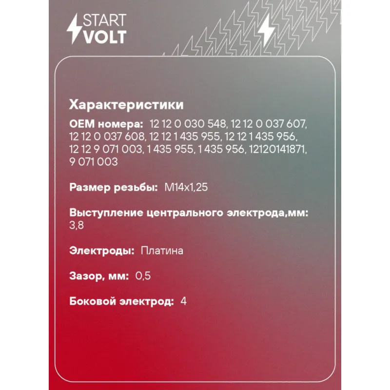 | Выступление центрального электрода,мм | 3,8 |