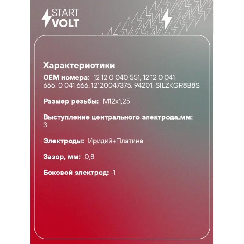 Свеча зажигания для автомобилей BMW 3 F30 (11-) 1.5i/2.0i/5 G30 (17-)/X3 G01 (17-) 2.0i Описание: Гарантийный срок - 2 года. Характеристики: Артикул: VSP 2606 OEM номера: 12 12 0 040 551, 12 12 0 041 666, 0 041 666, 12120047375, SILZKGR8B8S, 94201 Резистор: Есть Момент затяжки, нм: 20-25 Ширина ключа,мм: 14 Размер резьбы: M12x1,25 Длина резьбы,мм: 26,5 Выступление центрального электрода,мм: 3 Боковой электрод: 1 Электроды: Иридий+Платина Зазор, мм: 0,8 Маркировка: IPLDAP8LSYER-P Комплектация: Свеча зажигания - 1 шт Паспорт изделия/гарантийный талон Гарантия: от 1 года.