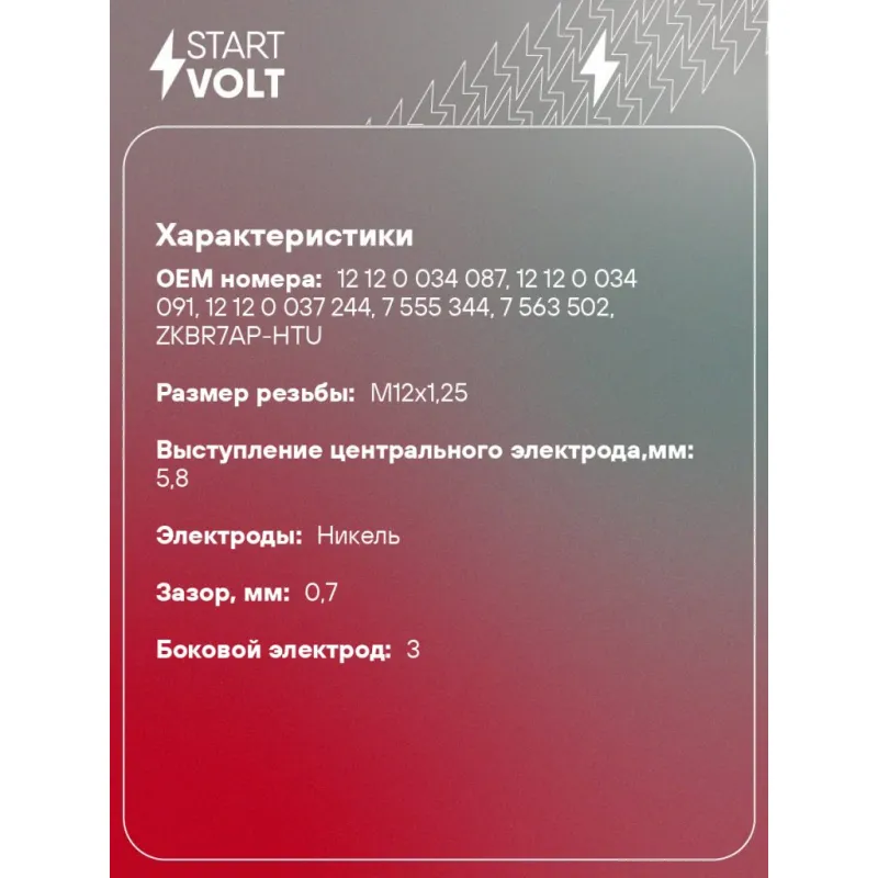Свеча зажигания для автомобилей BMW X6 E71 (08-)/7 F01 (08-) 3.0T Описание: Гарантийный срок - 2 года. Характеристики: Артикул: VSP 2610 OEM номера: 12 12 0 034 087, 12 12 0 034 091, 12 12 0 037 244, 7 555 344, 7 563 502, ZKBR7AP-HTU Резистор: Есть Момент затяжки, нм: 20-25 Ширина ключа,мм: 14 Размер резьбы: M12x1,25 Длина резьбы,мм: 26,5 Выступление центрального электрода,мм: 5,8 Боковой электрод: 3 Электроды: Никель Зазор, мм: 0,7 Маркировка: NLDAP7TUHR-7 Комплектация: Свеча зажигания - 1 шт Паспорт изделия/гарантийный талон Гарантия: от 1 года.