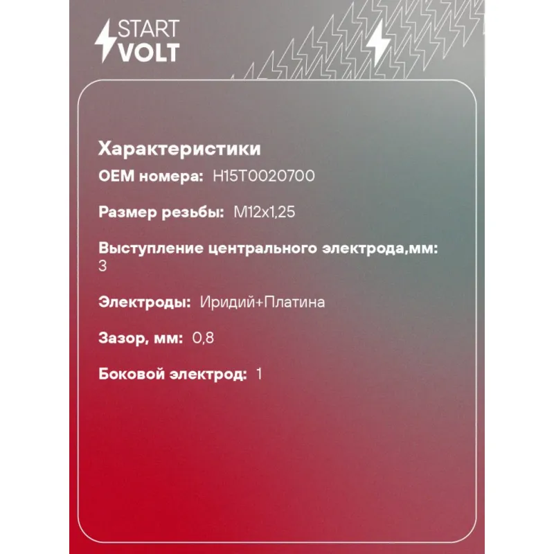 Свеча зажигания для автомобилей Changan CS55 (17-) 1.5T Ir+Pt Описание: Гарантийный срок - 2 года. Характеристики: Артикул: VSP 2723 OEM номера: H15T0020700 Резистор: Есть Момент затяжки, нм: 20-25 Ширина ключа,мм: 16 Размер резьбы: M12x1,25 Длина резьбы,мм: 26,5 Выступление центрального электрода,мм: 3 Боковой электрод: 1 Электроды: Иридий+Платина Зазор, мм: 0,8 Маркировка: IPLDKP8R-P Комплектация: Свеча зажигания - 1 шт Гарантия: от 1 года.