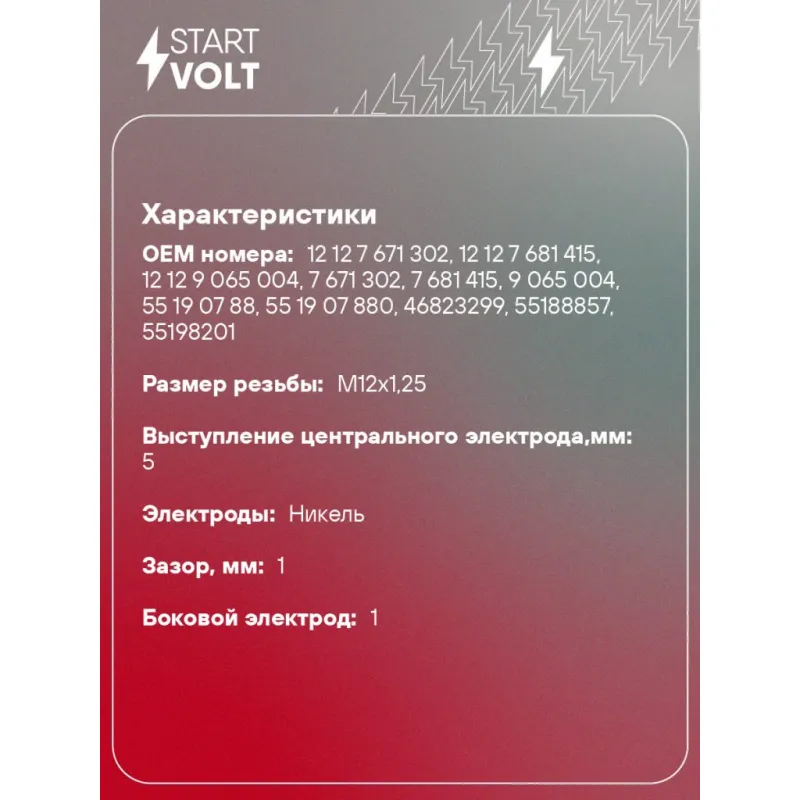 Свеча зажигания для автомобилей Fiat Doblo (05-) 1.4i Описание: Гарантийный срок - 2 года. Характеристики: Артикул: VSP 1602 OEM номера: 12 12 7 671 302, 12 12 7 681 415, 12 12 9 065 004, 7 671 302, 7 681 415, 9 065 004, 55 19 07 88, 55 19 07 880, 46823299, 55188857, 55198201, 55226083, 6000100138, 71737139, 77719244, 15 42 499, 9S51-12405-AA, 98069-579-5Q, AY02 18 110, AYO1 18 110, MS851767, B2401-4A0A0, 12 14 091, 12 14 092, 99917012990, 09482-00368, 09482-00369, 96 464 000, 96376288, ZKR7A-10, 1691, 670.4.006.1, 3707010-H01, 468QL3707950, 513-3707950 Резистор: Есть Момент затяжки, нм: 20-25 Ширина ключа,мм: 16 Размер резьбы: M12x1,25 Длина резьбы,мм: 19 Выступление центрального электрода,мм: 5 Боковой электрод: 1 Электроды: Никель Зазор, мм: 1 Маркировка: NDKP7R-10 Комплектация: Свеча зажигания - 1 шт Паспорт изделия/гарантийный талон Гарантия: от 1 года.