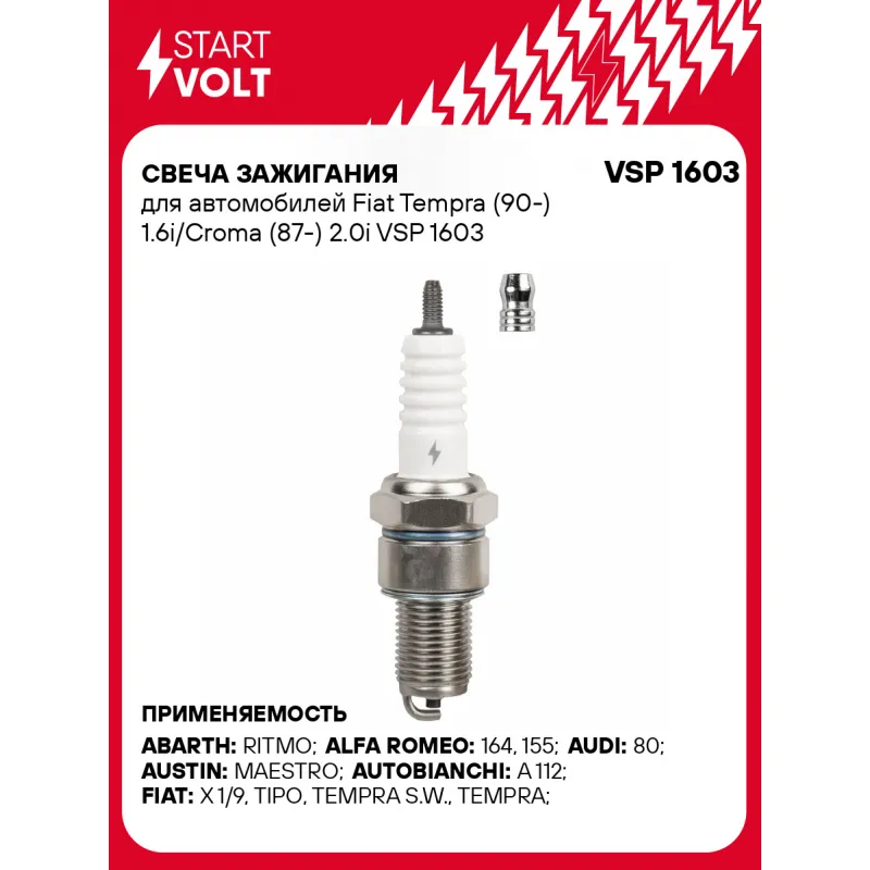 Свеча зажигания для автомобилей Fiat Tempra (90-) 1.6i/Croma (87-) 2.0i Описание: Гарантийный срок - 2 года. Характеристики: Артикул: VSP 1603 OEM номера: 7604.64, 98079-57846, 98079-57855, MS 851 219, MS 851 234, MS 851 414, Z 2152 947, 22401-V1417, 22401-W9817, 77 00 742 094, 77 00 868 864, 22401-AA210, 22401AA230, 09482-00495, 09482-00498, 2023, BPR7ES, W22EPR-U, 90098-22325, 90098-22745, 94700-00218, 94701 00218, 94703-00218, 94703-00220, 0004-400-7000, 9207 01027, E920701027, 58 94 58 5, 60 80 03 25, 75 54 43 6, 77 60 38 1, 77 72 51 5, 7FY SR, 7FY SSR Резистор: Есть Момент затяжки, нм: 25-30 Ширина ключа,мм: 20,6 Размер резьбы: M14x1,25 Длина резьбы,мм: 19 Выступление центрального электрода,мм: 3 Боковой электрод: 1 Электроды: Никель Зазор, мм: 0,8 Маркировка: NFP7R Комплектация: Паспорт изделия/гарантийный талон Свеча зажигания - 1 шт Гарантия: от 1 года.