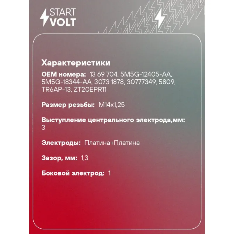 Свеча зажигания для автомобилей Ford Focus II (04-) 1.8i/2.0i Описание: Гарантийный срок - 2 года. Характеристики: Артикул: VSP 1002 OEM номера: 13 69 704, 5M5G-12405-AA, 5M5G-18344-AA, 3073 1878, 30777349, 5809, TR6AP-13, ZT20EPR11 Резистор: Есть Момент затяжки, нм: 10-20 Ширина ключа,мм: 16 Размер резьбы: M14x1,25 Длина резьбы,мм: 17,5 Выступление центрального электрода,мм: 3 Боковой электрод: 1 Электроды: Платина+Платина Зазор, мм: 1,3 Маркировка: PPQP6R-P13 Комплектация: Свеча зажигания - 1 шт Паспорт изделия/гарантийный талон Гарантия: от 1 года.
