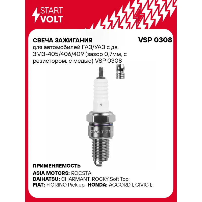 Свеча зажигания для автомобилей ГАЗ/УАЗ с дв. ЗМЗ-405/406/409 (зазор 0,7мм, с резистором, с медью) VSP 0308 StartVolt