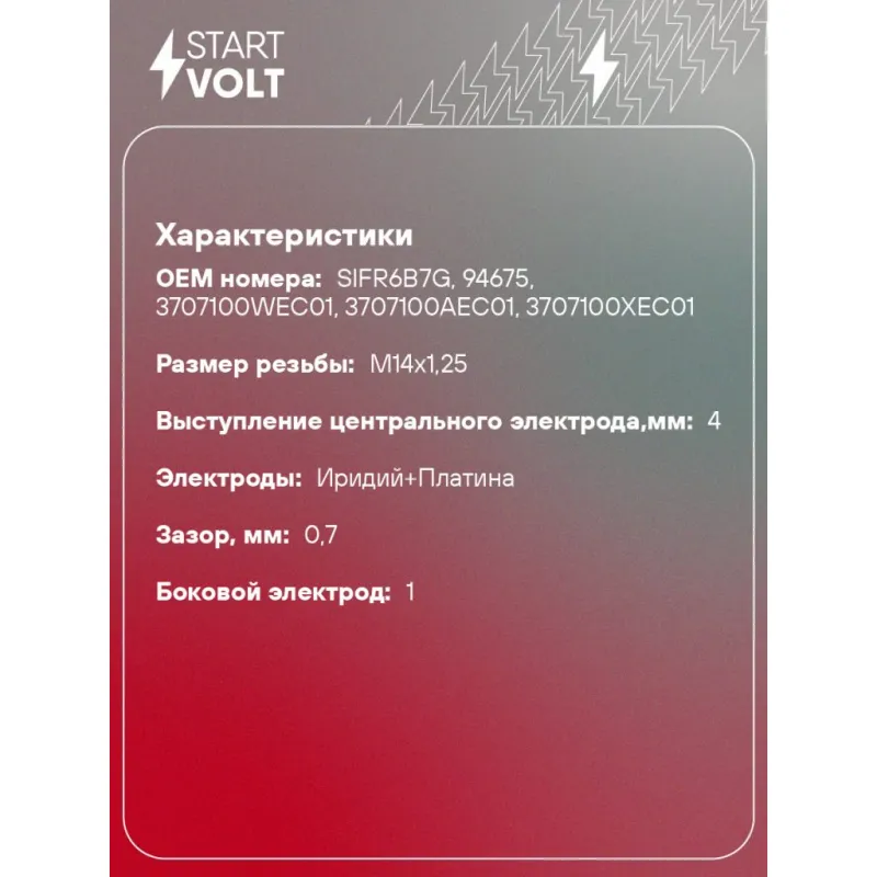 Свеча зажигания для автомобилей Haval F7 (17-)/H9 (15-) 2.0T Ir+Pt VSP 2702 StartVolt